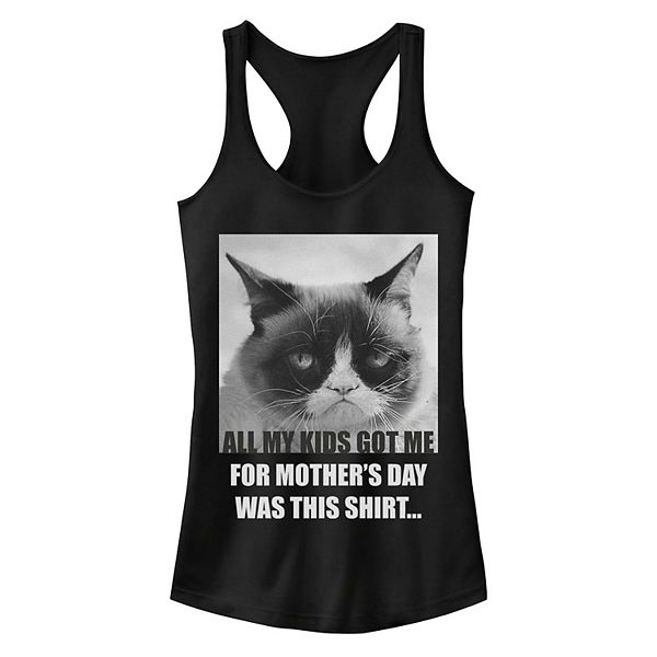 Celebrate this Mothers Day Grumpy Cat style with the Grumpy Cat Mothers Day Heather Black Racerback Tank Top. Rated 43 1375 views Liked by 100 Users. This cute oversized black shirt reads All My Kids Got Me For Mothers Day Gift Was This Shirt next to a black and white picture of everyones.