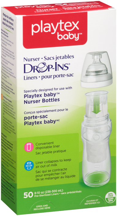 Playtex Baby Nurser Bottles with Drop-Ins Liners Closer to Natural Breast feeding. 48 out of 5 stars with 517 reviews. Product description This product includes 50 bottles liners measuring 4 ounces each.