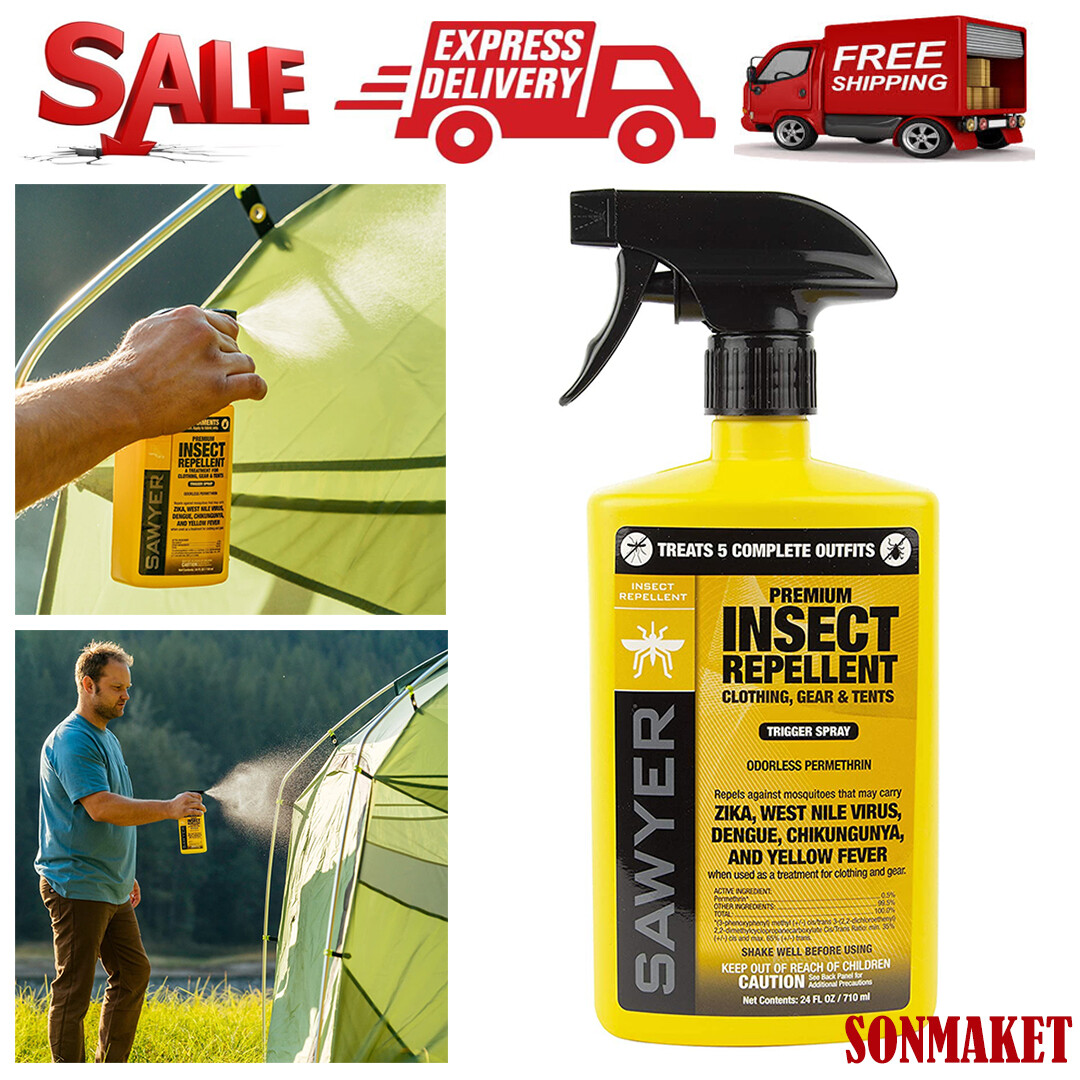 SP646N Sawyer Premium Insect Repellent Clothing Gear Tents - 6 oz Aerosol. A single application lasts six washings. Sawyer Products Premium Permethrin Insect Repellent Aerosol Spray 18 oz Bottle For use on clothing tents sleeping bags and other outdoor gear Sawyer Permethrin repels or kills disease-spreading ticks Lyme disease mosquitoes West Nile and Zika viruses and more than 55 other kinds of insects.