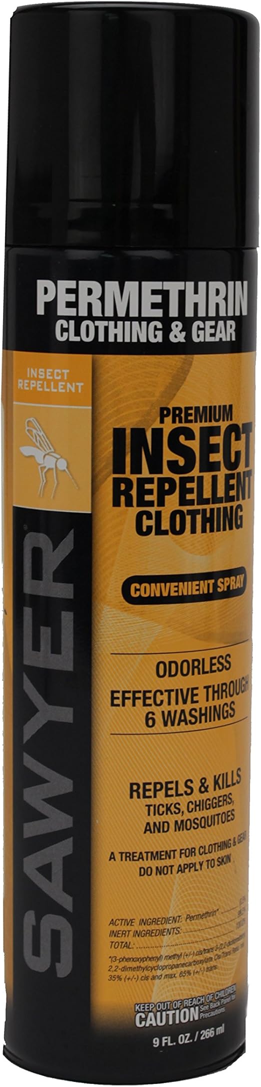 Permethrin is also effective against the Yellow Fever Mosquito which can transmit the Zika Virus. For use on clothing tents sleeping bags and other outdoor gear Sawyer Permethrin is more than just an insect repellent it actually kills ticks mosquitoes spiders chiggers mites and more than 55 other kinds of insects. Insect Repellent Treatment for Clothing Gear and Tents - Effective against mosquitoes ticks chiggers and mites for up to 6 weeks. About This Item Aerosol spray for easy application Effective through 6 washings or 6 weeks of UV exposure Odorless when dry Sawyer clothing insect repellent 9-oz aerosol is for use on clothing tents and other gear Will not harm fabrics Will not harm or melt gear Effective against ticks that carry. Im obsessed with these permethrin insect repellents from Sawyer. Sawyer permethrin aerosol and pump spray insect repellent. SP618 - Clothing Premium Insect Repellent - 18 oz Aerosol. Permethrin pump sprays are preferred because they are not restricted for airline travel. Mixture packaged in pressurized aerosol spray can.