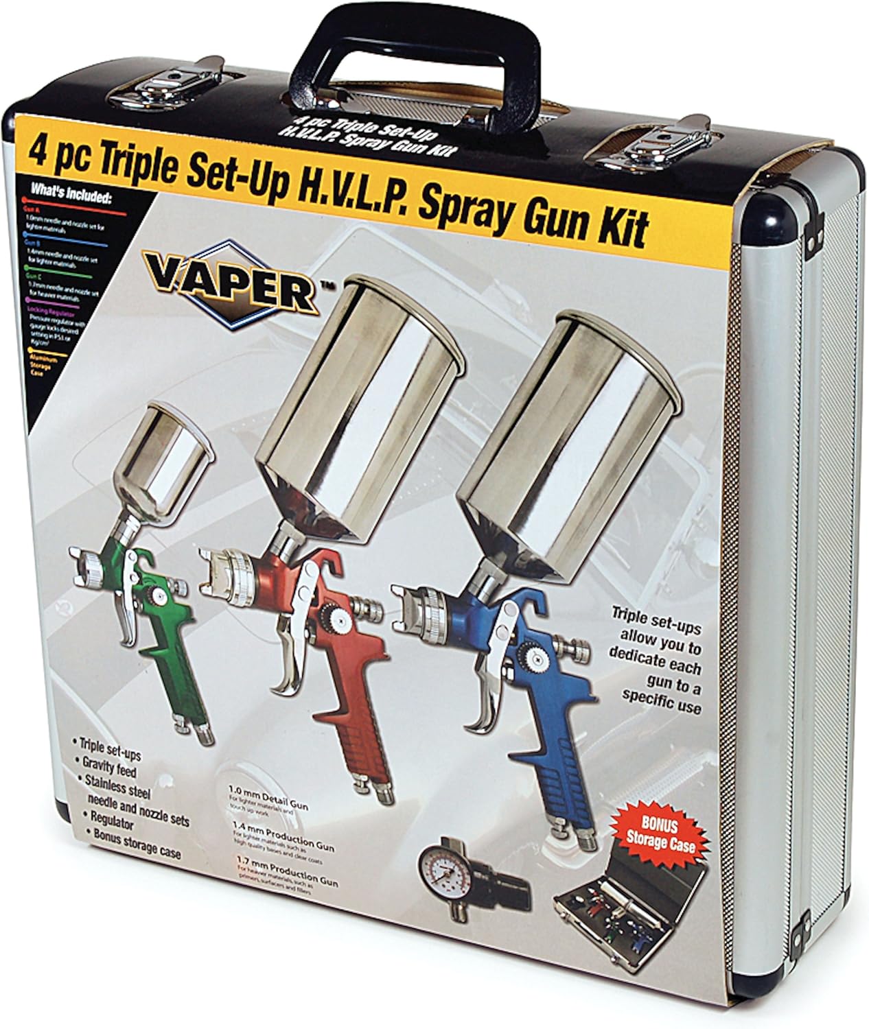 I always read user reviews along with the specifications of the product. Vaper 19220 HVLP Triple Set-Up Spray Gun review. 14mm needle and nozzle set is great for use with base coat and clear coat materials.