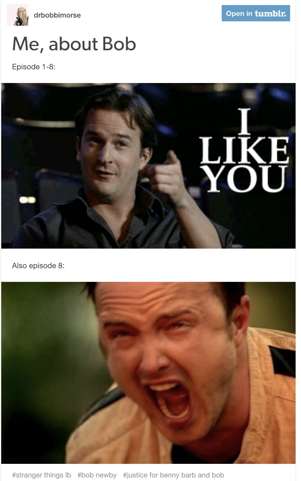 From Bob to Babysitter Steve these are all the best memes from Stranger Things Season 2. Stranger Things 2016 S02E03 Chapter Three. Apr 16 2020 - Explore Rollincattys board Bob Newby on Pinterest.