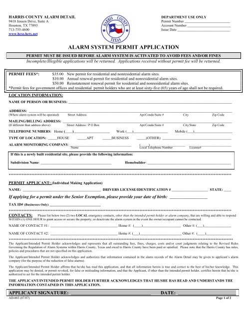 Please note that this application is not for a Fire Alarm. Acquiring the alarm permit. Homeowners almost never need a license to install their own systems although its always a good idea to check local construction zoning and homeowner association rules.
